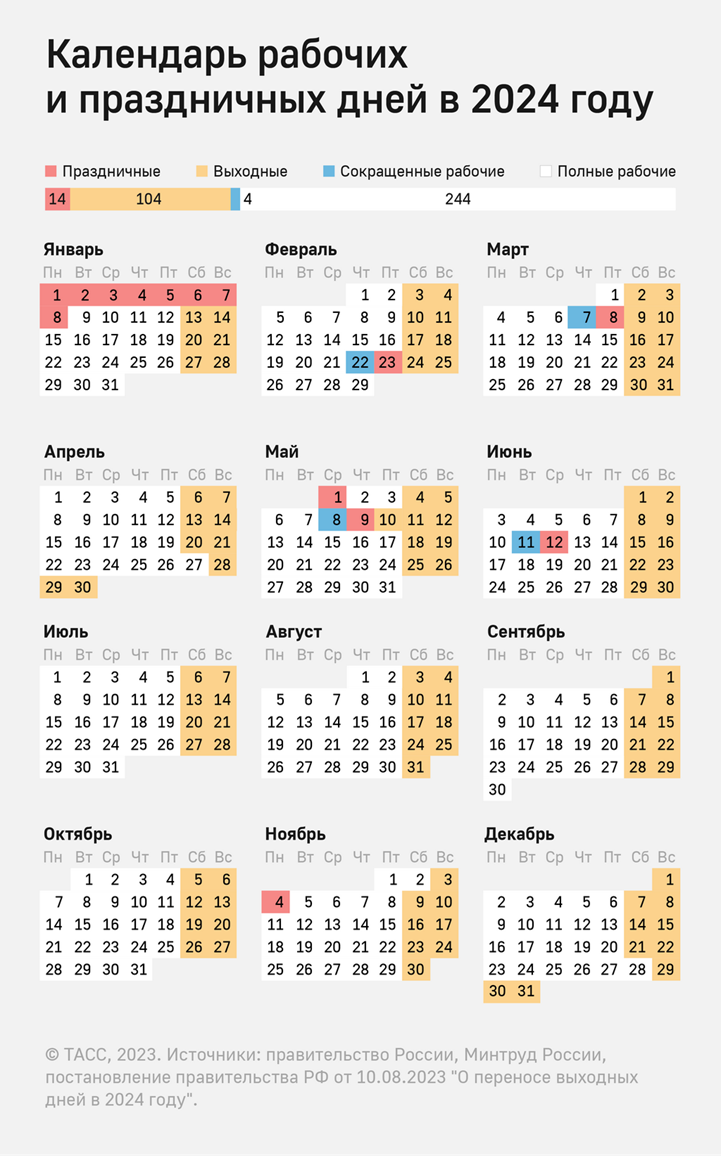 Россияне будут работать в субботу, 2 ноября, из-за переноса выходного дня на 30 апреля. Благодаря этому россияне смогли отдохнуть на майские праздники с 28 апреля по 1 мая.