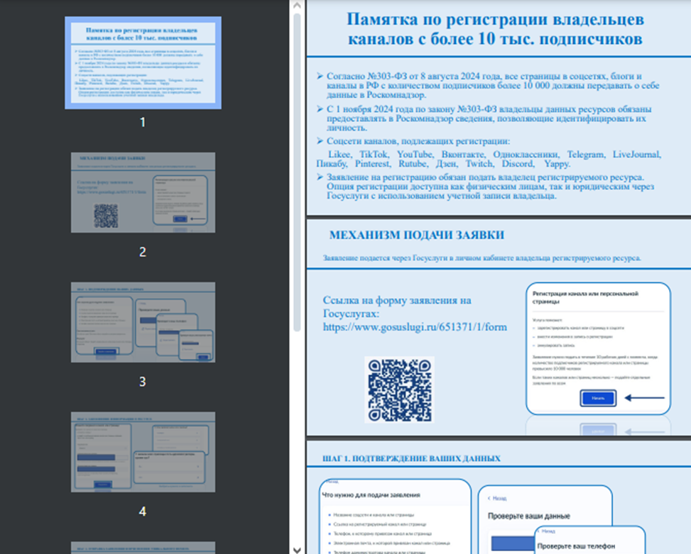 Согласно федеральному закону № 303-ФЗ от 8 августа 2024 года, все страницы в соцсетях, блоги и каналы в РФ более чем с 10 тысячами подписчиков должны передавать о себе данные в Роскомнадзор. С 1 ноября владельцы данных ресурсов обязаны предоставлять в Роскомнадзор сведения, позволяющие идентифицировать их